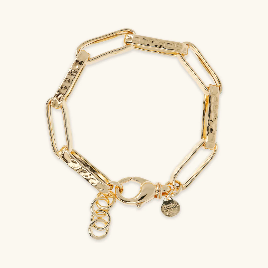 Bracciale Etrusca Gioielli realizzato in lega Golden, placcata oro giallo 18kt, impreziosito da una catena forzatina allungata paperclip con superficie martellata; chiusura a moschettone con extender.Placcatura oro giallo 18kt Lega brevettata Golden Designed and made in Italy Ipoallergenico