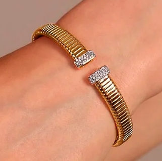 Bracciale Golden Rigido Tubogas con Pavé di Cubic Zirconia