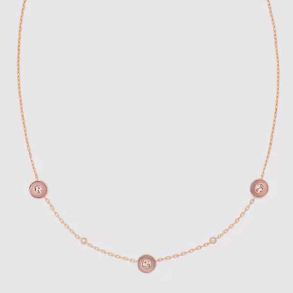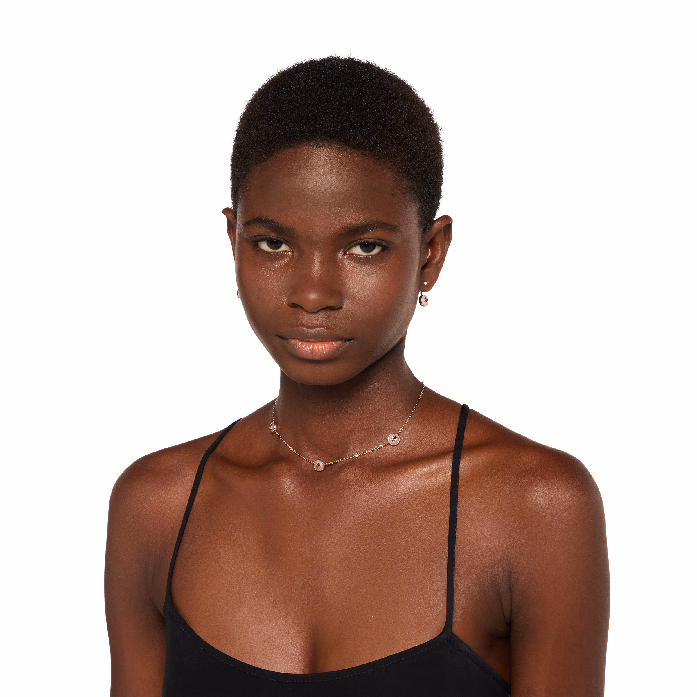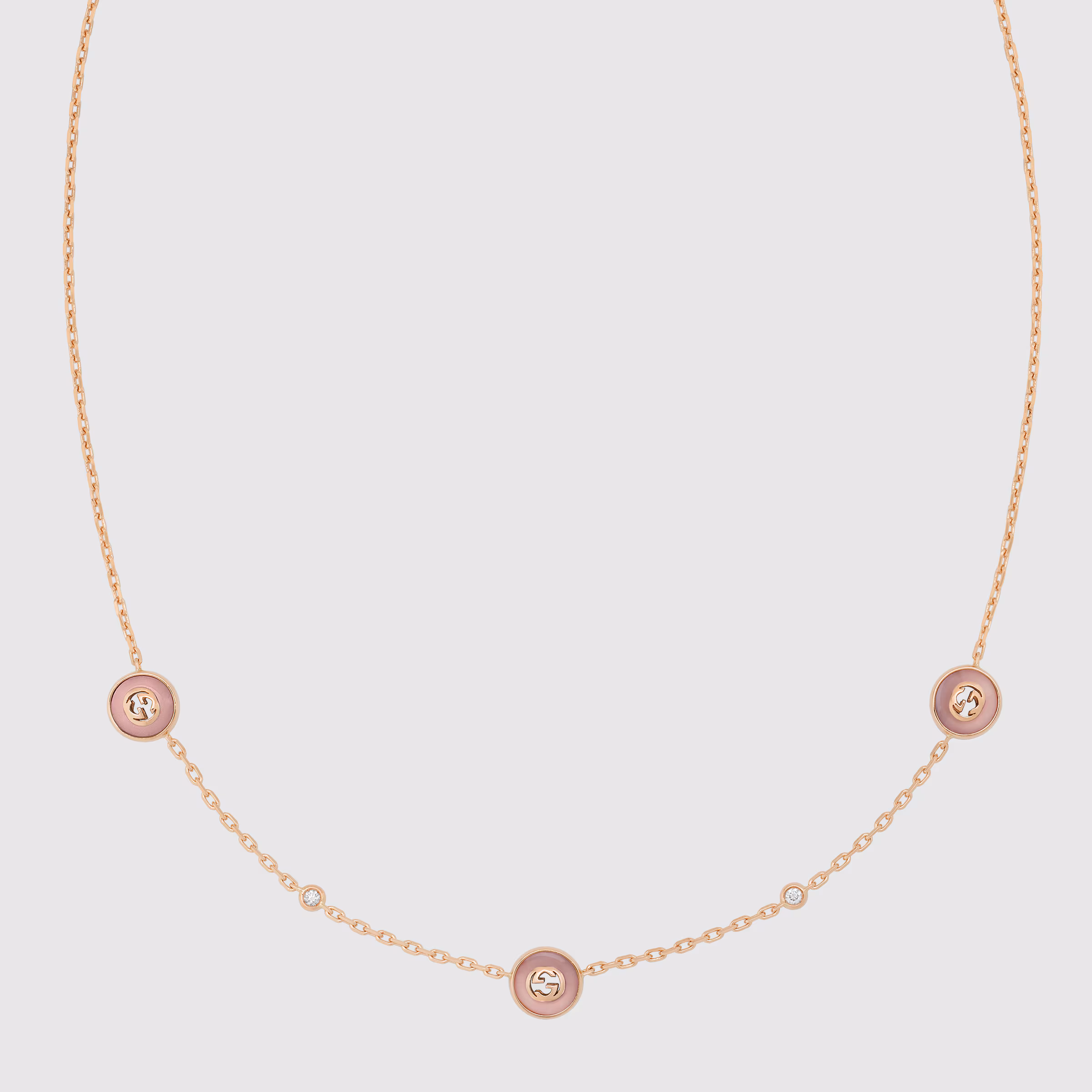 La nuova linea Gucci Interlocking presenta l'opale rosa, una pietra preziosa nota per le sue proprietà rilassanti. I nuovi modelli in oro rosa sfoggiano la gemma insieme ai diamanti bianchi, come questa collana a catena. Tre pietre accompagnano l'Incrocio GG, alternandosi con due diamanti scintillanti.Oro rosa 18 carati con opale rosa Incrocio GG 2 diamanti bianchi, circa 0,057 carati 3 pietre, circa 4,5 carati Chiusura a moschettone con Incrocio GG Peso: circa 7,15 g Lunghezza: 36-40 cm Fabbricato in Italia Gucci garantisce, al proprio interno e nella propria filiera, il rispetto degli standard di Responsabilità Sociale e Ambientale in linea con la sua strategia di sostenibilità. L'oro, il platino e i diamanti Gucci sono certificati dal Responsible Jewelry Council, istituito per promuovere pratiche etiche, sociali e ambientali responsabili, volte a garantire il rispetto dei diritti umani in tutta la filiera dell'oro e dei diamanti, dalle miniere alla vendita.