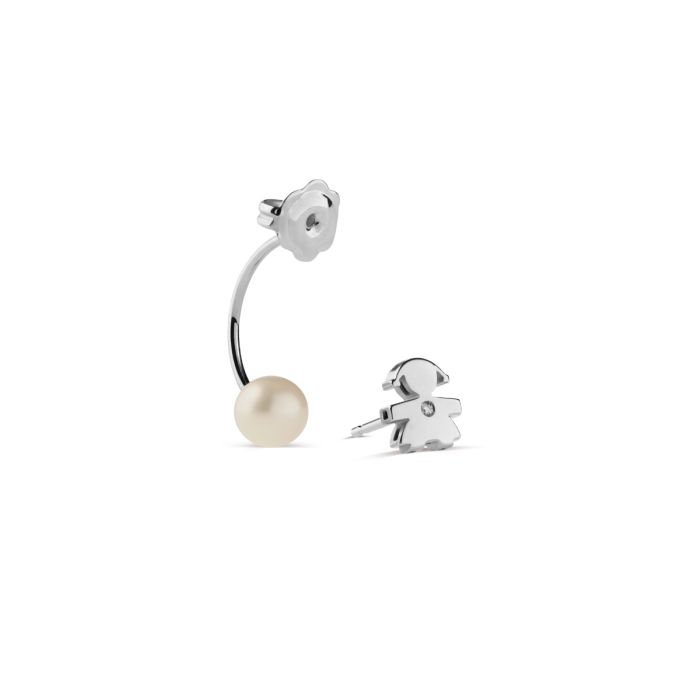 Mono orecchino con perla da 6-6,5 mm sagoma bimba in oro bianco 9kt con diamante da 0,005 ct