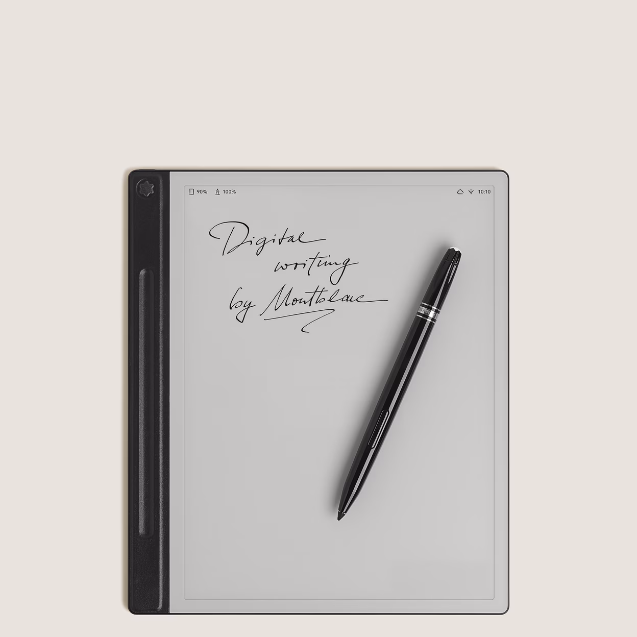 Montblanc Digital Paper: un nuovo capitolo nella tradizione di innovazione intelligente della Maison. Pensato per chi apprezza la rasserenante nitidezza della scrittura manuale, Montblanc Digital Paper offre un apposito spazio digitale per scrivere, disegnare o annotare facilmente. Che si tratti di partire da una pagina bianca, annotare documenti o trovare e condividere appunti, l’esperienza è fluida e raffinata. Tre punte intercambiabili consentono di ottenere tratti perfetti, distinti, personali e soddisfacenti. Ancorato nel retaggio artigianale di Montblanc, Montblanc Digital Paper plasma un’intenzione familiare in una forma moderna. Un compagno per chi scrive non solo per comunicare, ma per lasciare un segno Tecnologia Compatibilità L’app Companion Montblanc Digital Paper supporta iOS 15 o versioni successive e Android 14 o versioni successive. Riserva di carica 3740 mAh, ricarica con cavo USB-C. Spazio d’archiviazione 64 GB. Connettività Wi-Fi 2,4G e 5G, Bluetooth 5.4 (utilizzato esclusivamente per la connessione Digital Pen) Pulsanti Digital Paper: 1 Pulsante on/off. Digital Pen: 2 interruttori configurabili per strumenti superiori e inferiori, 1 pulsante superiore configurabile. Nella confezione Set che comprende il tablet Montblanc Digital Paper, Montblanc Digital Pen dotato di una punta (tipo in lino), 2 punte aggiuntive (liscia e opaca), cavo USB-C, manuale di sicurezza con scheda di garanzia inclusa. Materiale Alluminio Peso 473 g