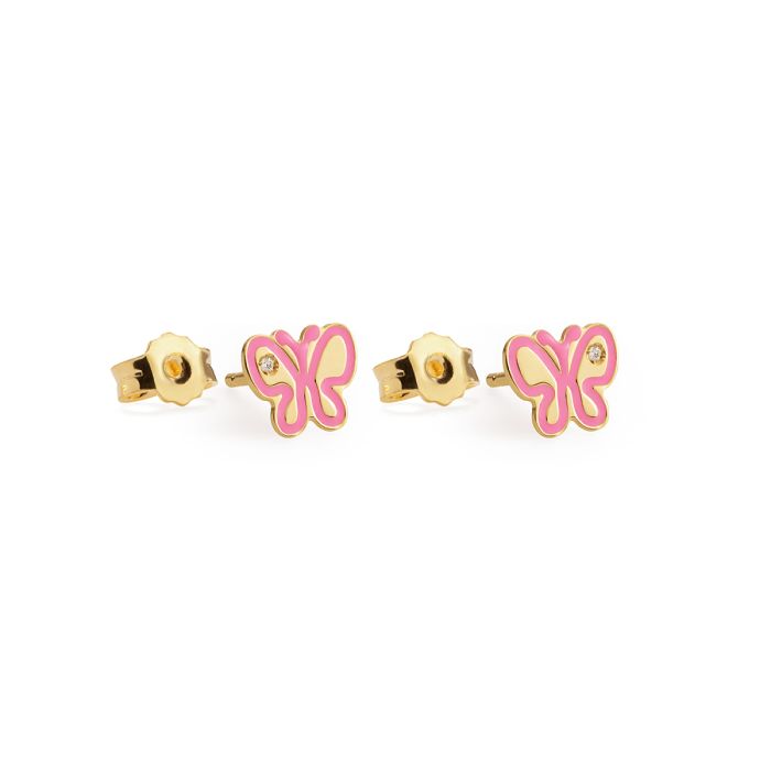 Orecchini "Lucciole" in oro giallo 9kt con farfallina smaltata e diamante da 0,003 ct