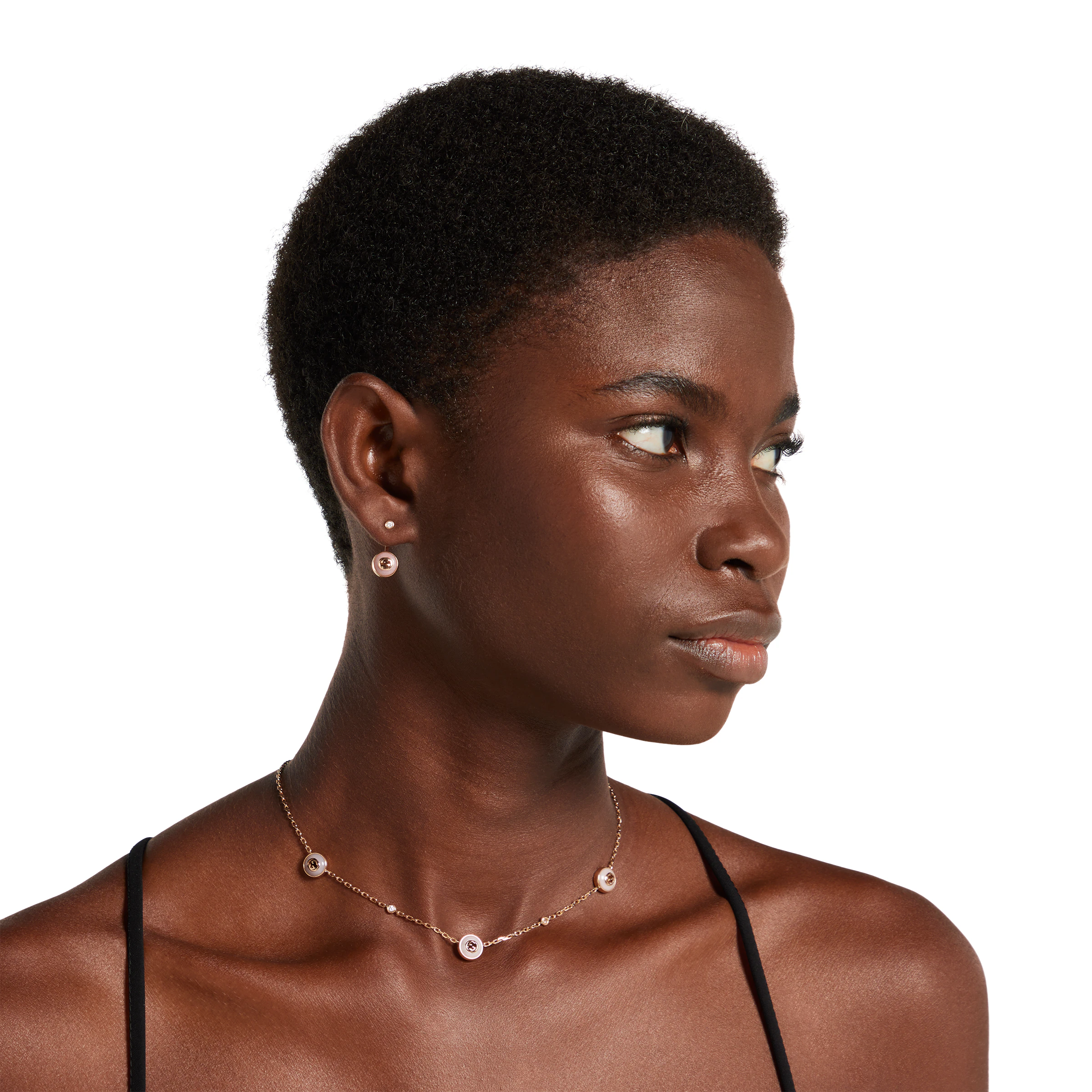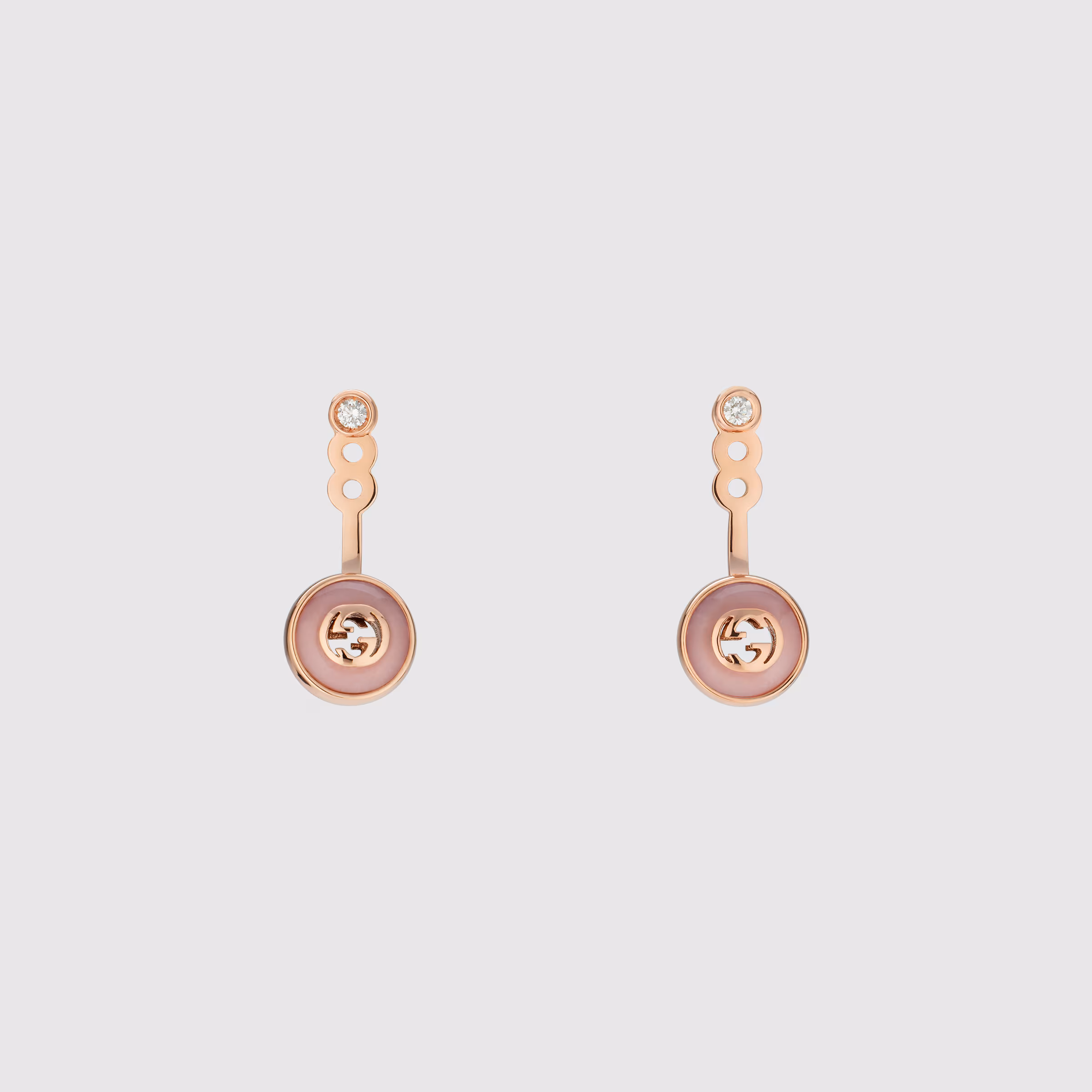 La nuova linea Gucci Interlocking presenta l'opale rosa, una pietra preziosa nota per le sue proprietà rilassanti. I nuovi modelli in oro rosa sfoggiano la gemma insieme ai diamanti bianchi, come questo paio di orecchini a goccia Interlocking G.Oro rosa 18 carati con opale rosa Incrocio GG 2 diamanti bianchi, circa 0,057 carati 1 pietra, circa 3 carati Per lobi forati Peso: circa 3,9 g Fabbricato in Italia Gucci garantisce, al proprio interno e nella propria filiera, il rispetto degli standard di Responsabilità Sociale e Ambientale in linea con la sua strategia di sostenibilità. L'oro, il platino e i diamanti Gucci sono certificati dal Responsible Jewelry Council, istituito per promuovere pratiche etiche, sociali e ambientali responsabili, volte a garantire il rispetto dei diritti umani in tutta la filiera dell'oro e dei diamanti, dalle miniere alla vendita.