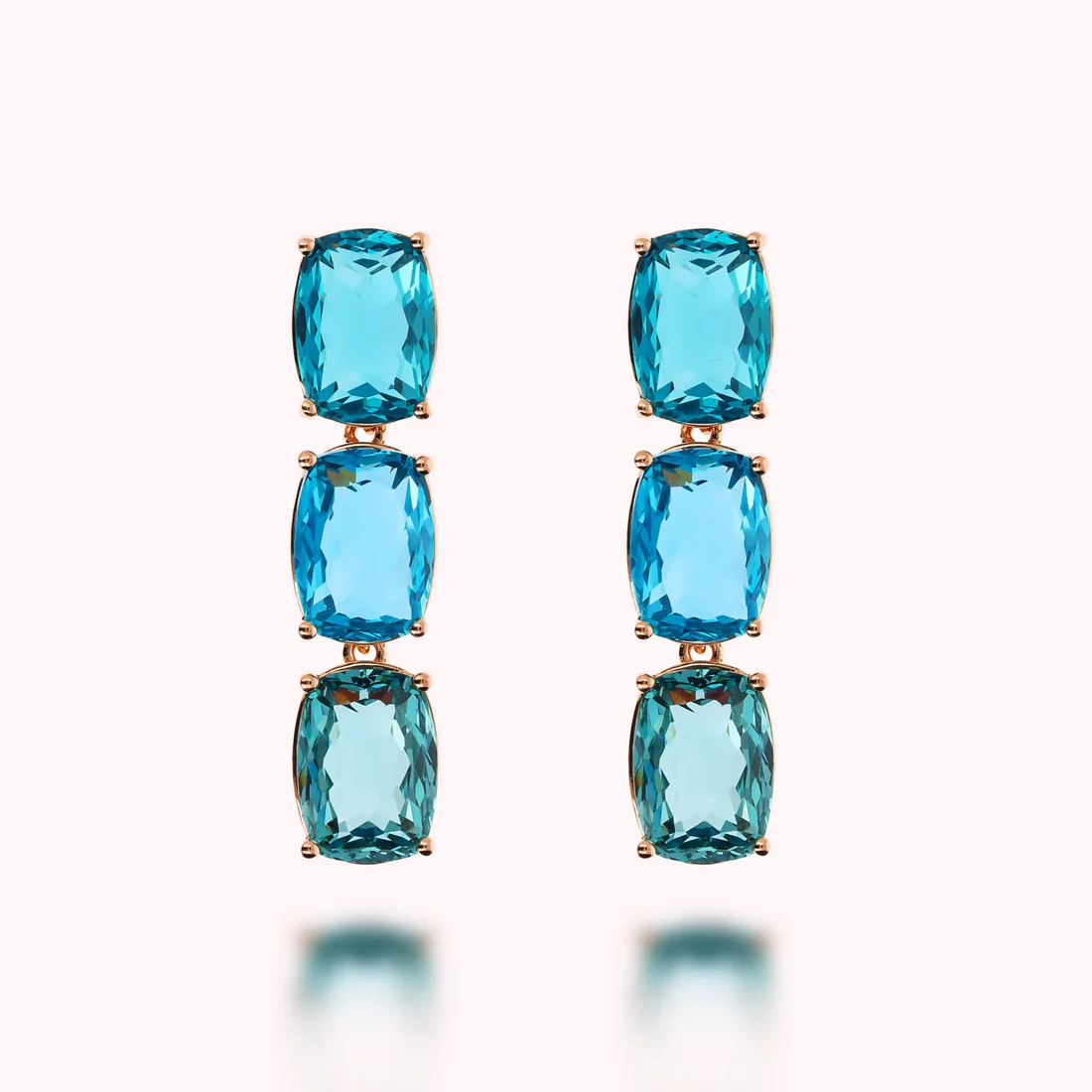Orecchini pendenti Bronzallure realizzati in lega Golden Rosé, placcata Oro rosa 18kt, impreziositi da pietre prisma gem rettangolari (8x11 mm) dal taglio a mosaico. Chiusura a perno e farfalla.Lega brevettata Golden Rosé Designed and made in Italy Nickel free, cadmium free Ipoallergenici