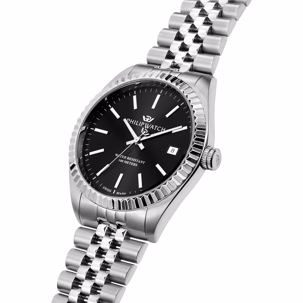 OROLOGIO PHILIP WATCH CARIBE URBAN - R8253227002 - Genere : Uomo, Materiale e finitura cassa: Acciaio, Misura cassa: 39.00mm, Spessore cassa: 9.35mm, Finitura cassa: Lucido, satinato, Colore cassa: Silver, Vetro: Vetro zaffiro, Materiale cinturino: Acciaio, Colore cinturino: Silver, Chiusura: Fibbia diver c/pulsanti e blocco di sicurezza, Swiss made: Sì, Water resistant: 10 atm, Garanzia: Ufficiale 2 anni Philip Watch, Confezione: Originale Philip Watch