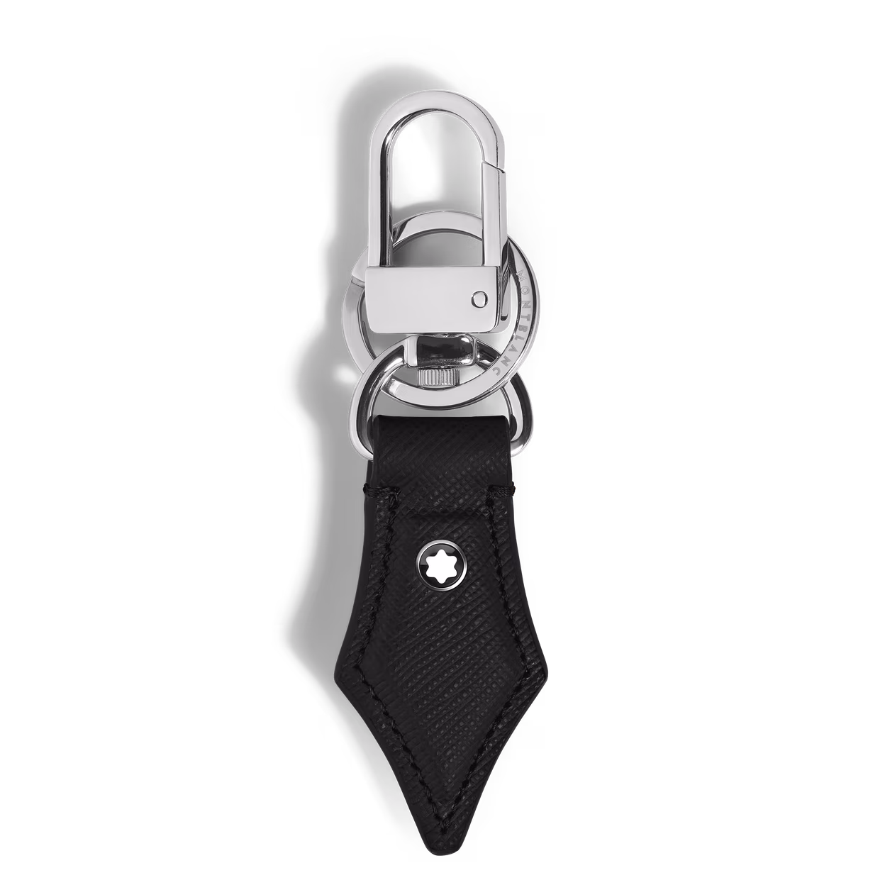 Il portachiavi Montblanc, realizzato in pelle Sartorial nera goffrata, è un discreto tributo all’arte della scrittura. La forma ispirata al pennino della stilografica riflette la tradizione Montblanc in un dettaglio raffinato. Pensato per offrire praticità, è dotato di un anello resistente per molteplici chiavi e un gancio facile da chiudere per agganciarlo alle borse.
